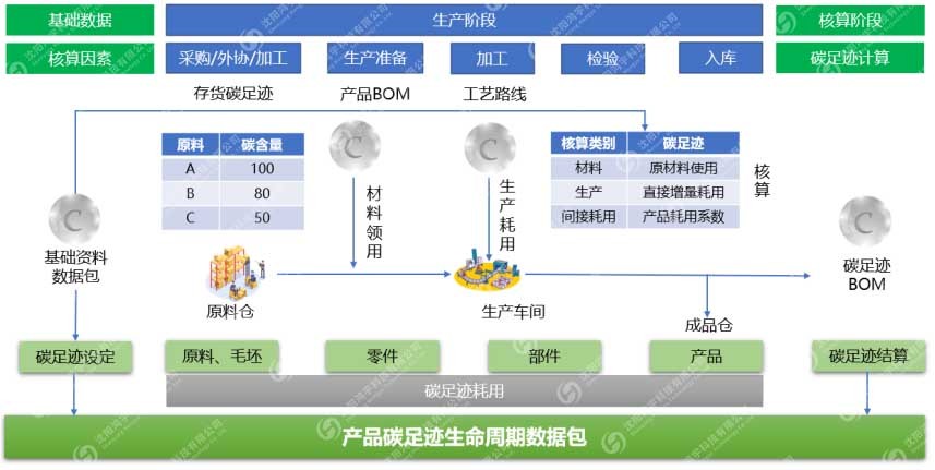 碳足迹系统通过对生产过程实时采集原材料上线到成品入库的整个生产过程中的数据,包括物料、仓库、设备、人员、质量、工艺、异常等,这些数据能够清晰地反映出生产过程中的碳排放情况,有效地实现生产碳排放统计的功能。